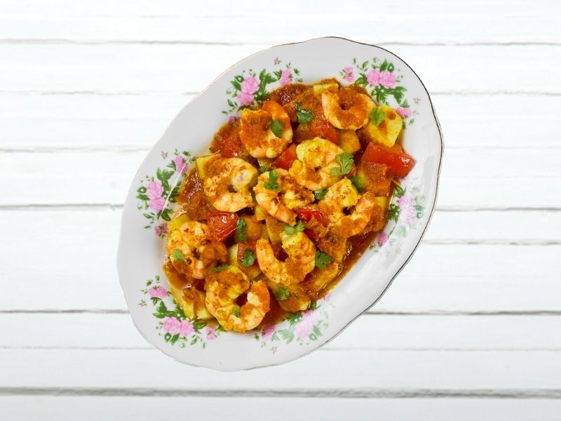 Fresh shrimp cooked in the traditional way with potato, tomatoes, cilantro, lemon and
