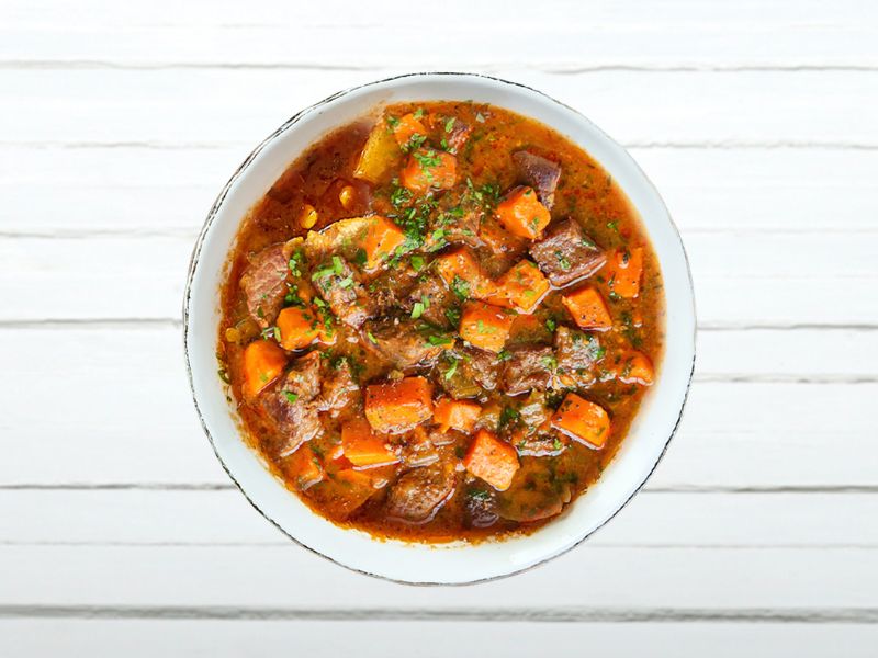 Fresh meat cooked in traditional way with tomato, potato, cilantro, onion, lentils, gulf spices served with white rice or tanoor bread.